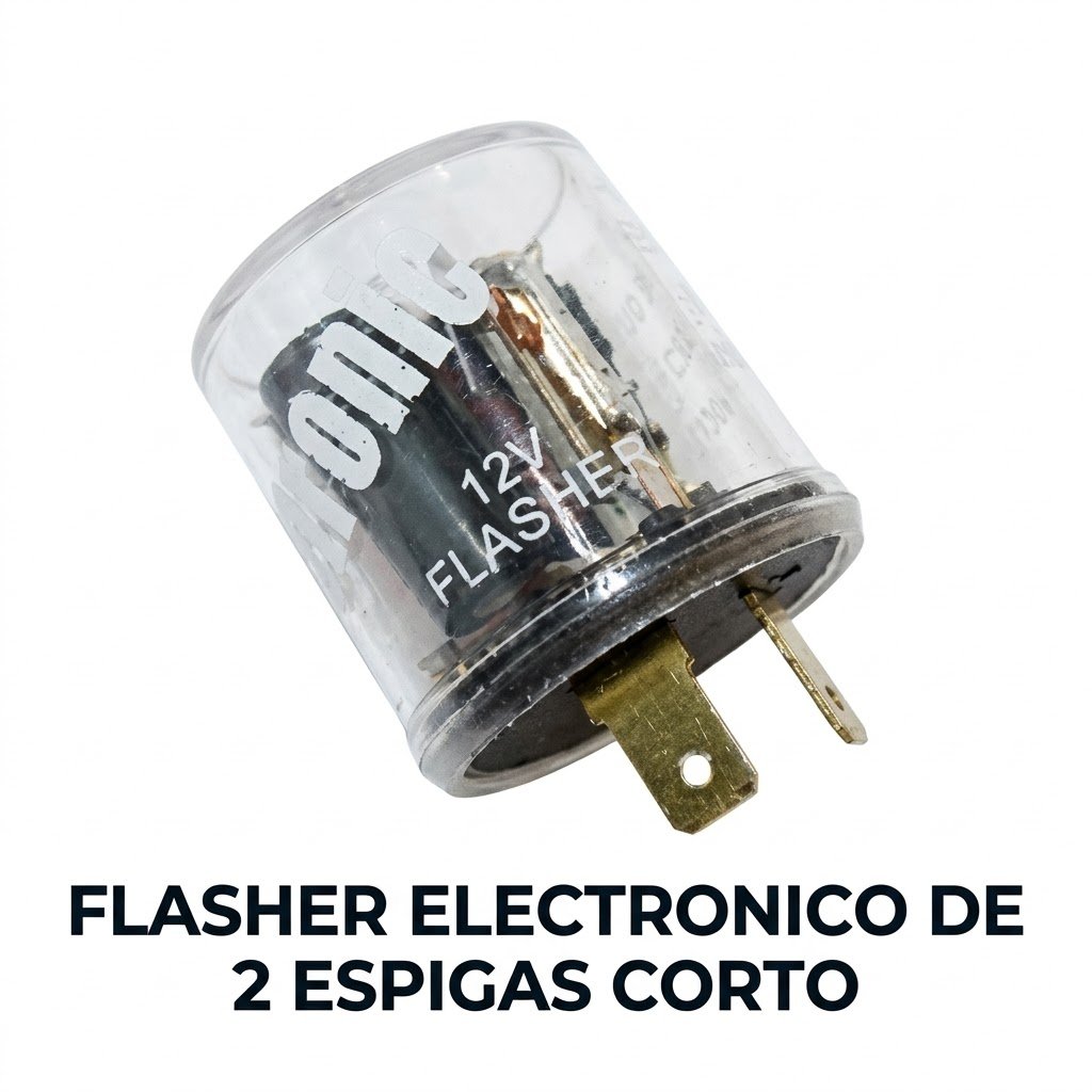 Optimiza el sistema de señalización de tu vehículo con este Flasher Electrónico de 2 Espigas en versión corta. Este componente es el reemplazo perfecto para los destelladores térmicos antiguos, ofreciendo un parpadeo mucho más preciso y confiable para las luces direccionales y de emergencia. Al ser un dispositivo electrónico de estado sólido, no depende del calor para funcionar, lo que garantiza un ritmo de destello constante desde el primer segundo de activación.