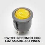 Interruptor redondo tipo balancín con luz piloto amarilla y 3 terminales (SPST). Ideal para montaje en panel en aplicaciones de 12V a 250V. Combina funcionalidad y estética en un diseño compacto de fácil instalación.