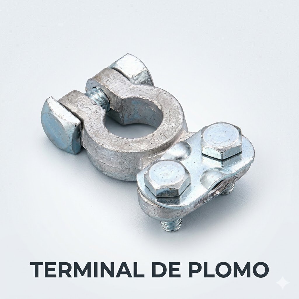 Par de terminales universales de plomo para batería (1 positiva / 1 negativa). Fabricadas en plomo reforzado para máxima conductividad y resistencia a la corrosión. Ideales para reemplazar bornes dañados o sulfatados en cualquier vehículo.