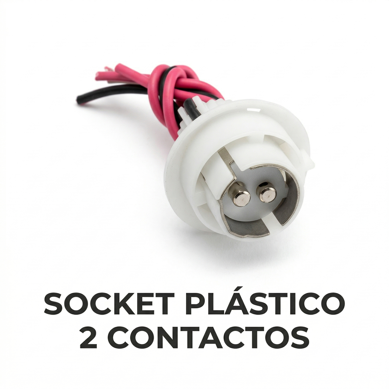 Socket universal de reemplazo de alta calidad para focos de doble contacto (tipo 1034 o 1157). Diseñado con un sistema de tres cables (tierra y dos líneas de corriente) para funciones duales como freno/trasera o direccional/cuartos. Su cuerpo de plástico reforzado garantiza un ajuste seguro y resistente a las vibraciones.